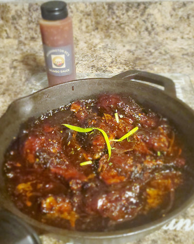 Washington DC's Famous Mumbo Sauce. Made with our signature honey sauce with a mix of peppers and seasonings that has just the right amount of sweetness, heat and smoke mixed with our spice blend. The Mumbo sauce is best known for dipping sauce for your fried foods. But you can think a little out the box with this sauce and make this best sweet and sour chicken, pork, or beef.